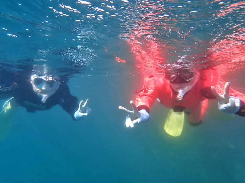 シュノーケルをくわえて水面を泳ぎ、高い視点から広大な水中世界を見下ろします。インストラクターが同行します。